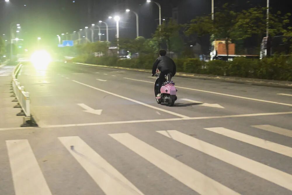 11月25日晚,在广西某市街头,一些少年骑着改装过的电动自行车炫技(拼版照片)。